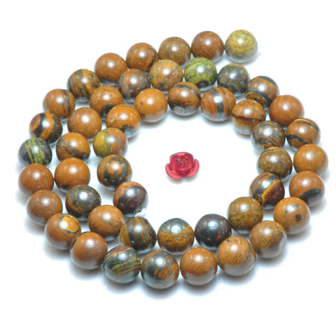 Natural yellow tiger iron gemstone smooth round loose beads wholesale jewelry making bracelet necklace diy