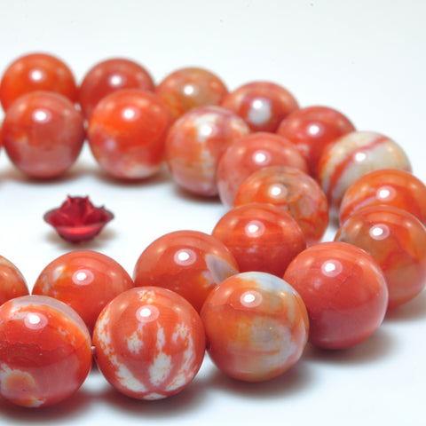 Orange fire agate smooth round loose beads wholesale gemstone jewelry 10mm 15"