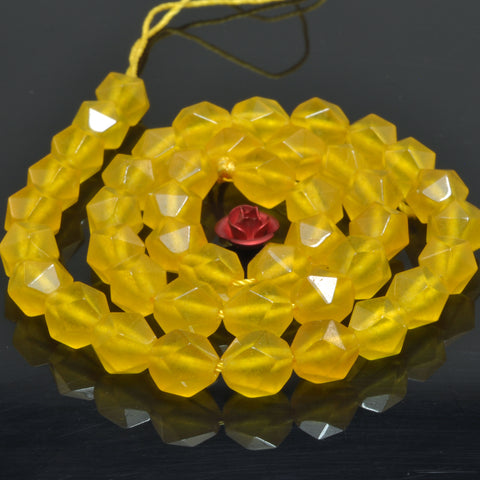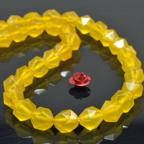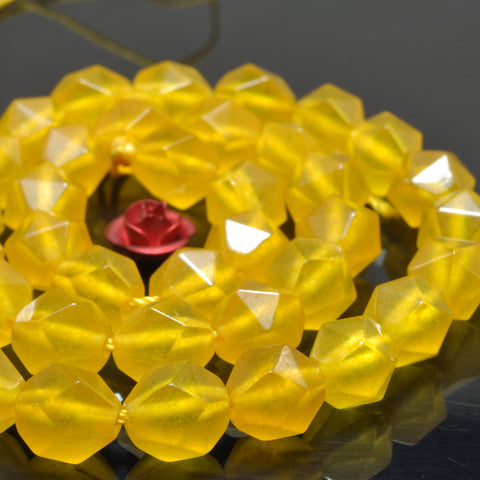 Yellow jade star cut faceted nugget beads wholesale gemstone jewelry 15"