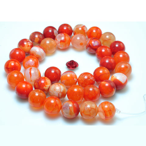 Orange red fire agate gemstone smooth round beads 8mm 10mm 15"