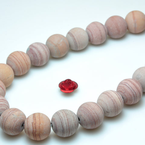 Pink banded jasper matte round beads gemstone 6mm-10mm 15"