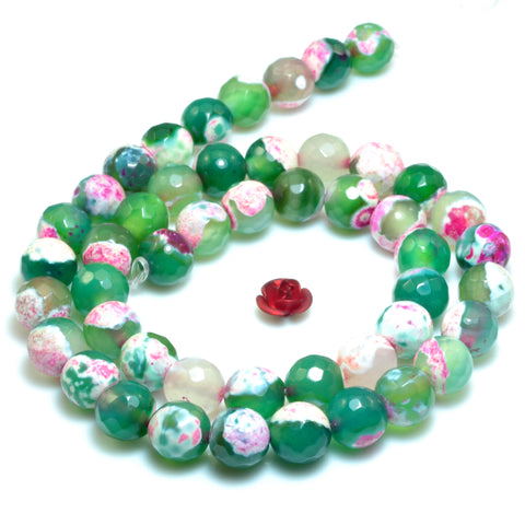 Rainbow agate faceted round loose beads red green wholesale gemstone jewelry 15"