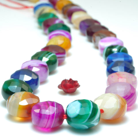 Rainbow banded agate mix color gemstone faceted coin beads wholesale jewelry making 15"