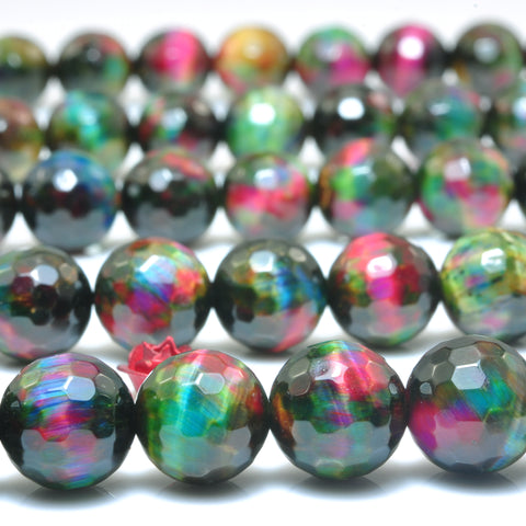 Galaxy tiger eye faceted round loose beads wholesale gemstone rainbow tiger's eye for jewelry making diy bracelets necklace