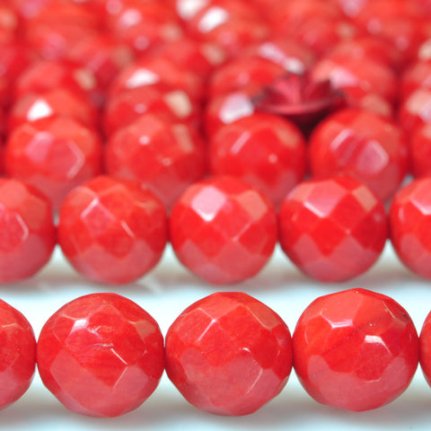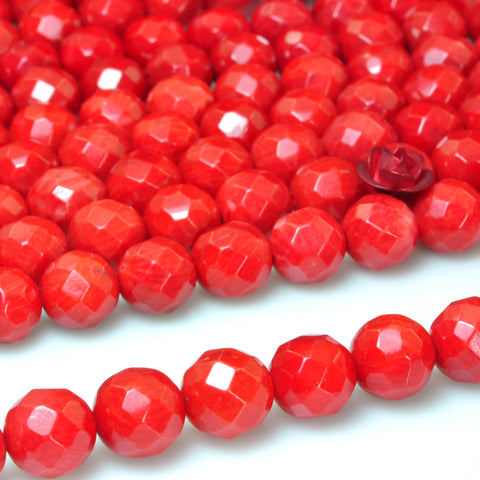 Red coral faceted round loose beads gemstone wholesale jewelry making 15"