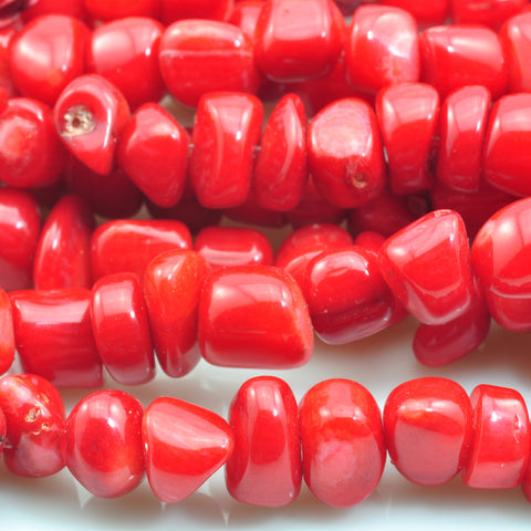 Red coral smooth pebble chip beads wholesale gemstone jewelry 15"