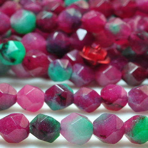 Red green jade star cut faceted nugget beads gemstone 6mm 15"