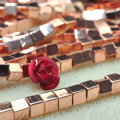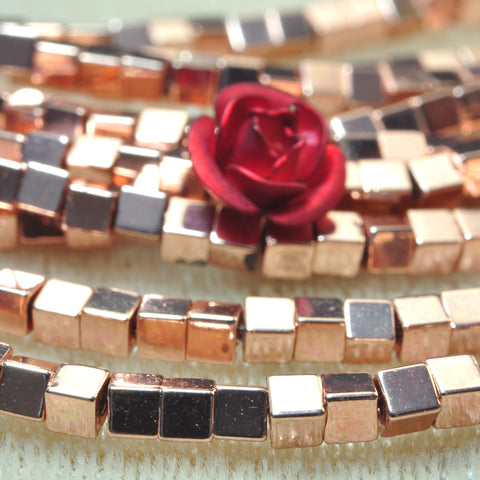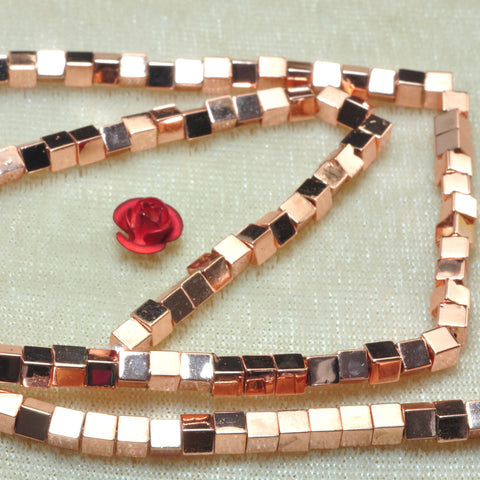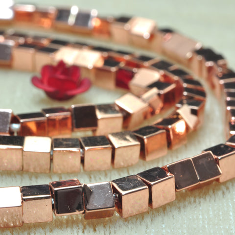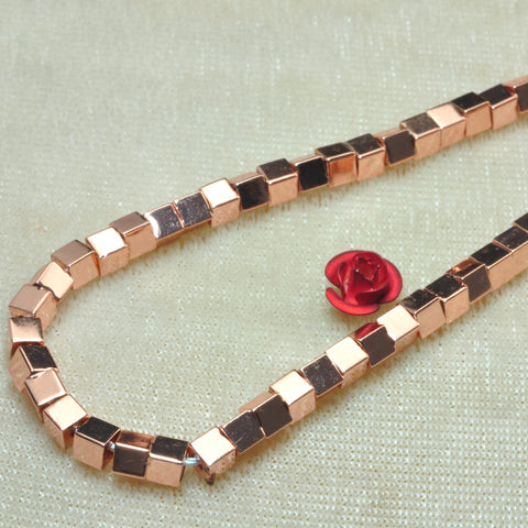 Rose gold hematite smooth square cube beads stone wholesale jewelry 15"