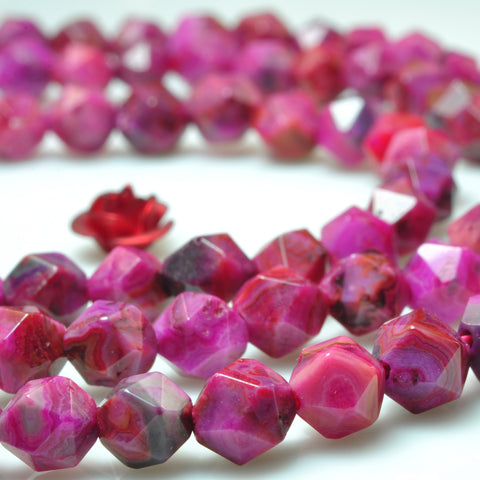 Rose red mexican crazy lace agate star cut faceted nugget beads 6mm 15"
