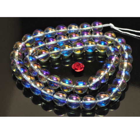 Titaium rainbow crystal smooth round loose synthetic beads wholesale jewelry 15"