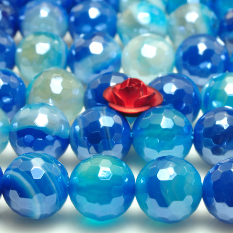 Titanium blue banded agate faceted round loose beads gemstone wholesale jewelry making 15"