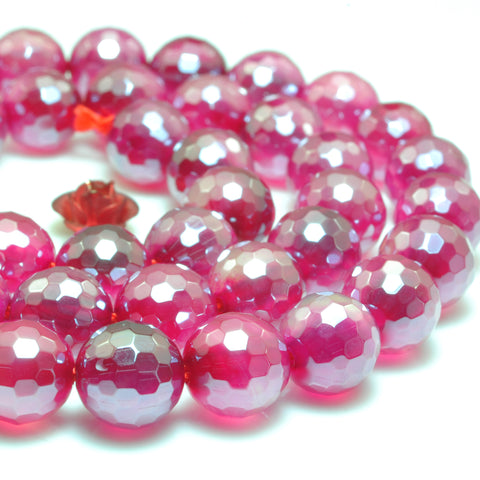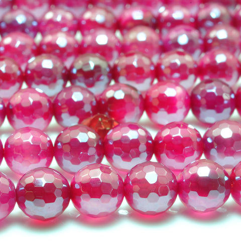 Titanium coated rose red agate faceted round loose beads wholesale gemstone jewelry 15"