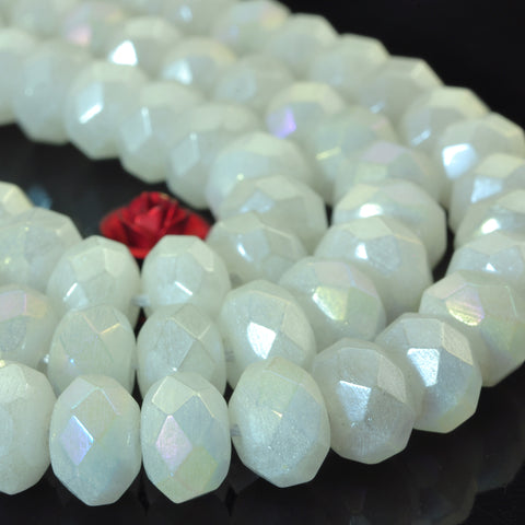 Titanium coated white jade faceted rondelle beads gemstone wholesale jewelry making bracelet necklace diy