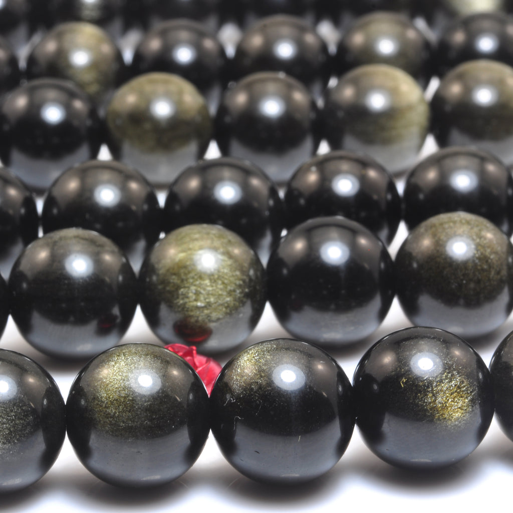 Natural black golden obsidian smooth round loose beads gemstone wholesale jewelry bracelet design 15"