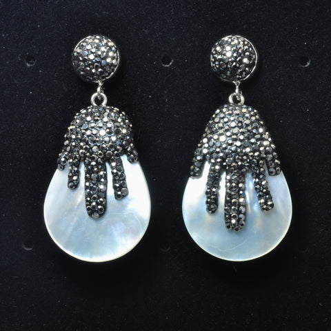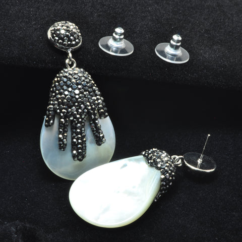 Earrings white mop shell cz rhinestone crystal pave bead silver stud dangle earrings drop fashion jewelry