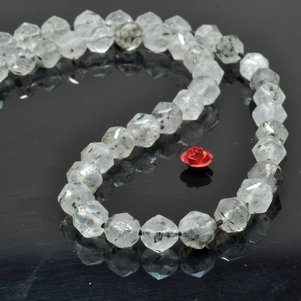 Natural black super seven crystal diamond faceted round beads loose gemstone wholesale for jewelry making bracelet diy