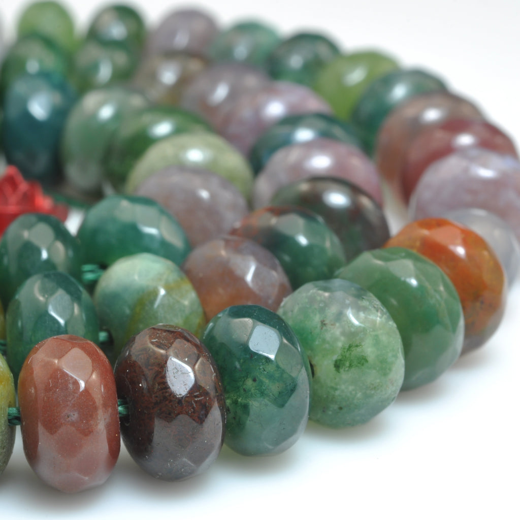 Natural indian agate faceted rondelle loose beads green gemstone wholesale jewelry 15"